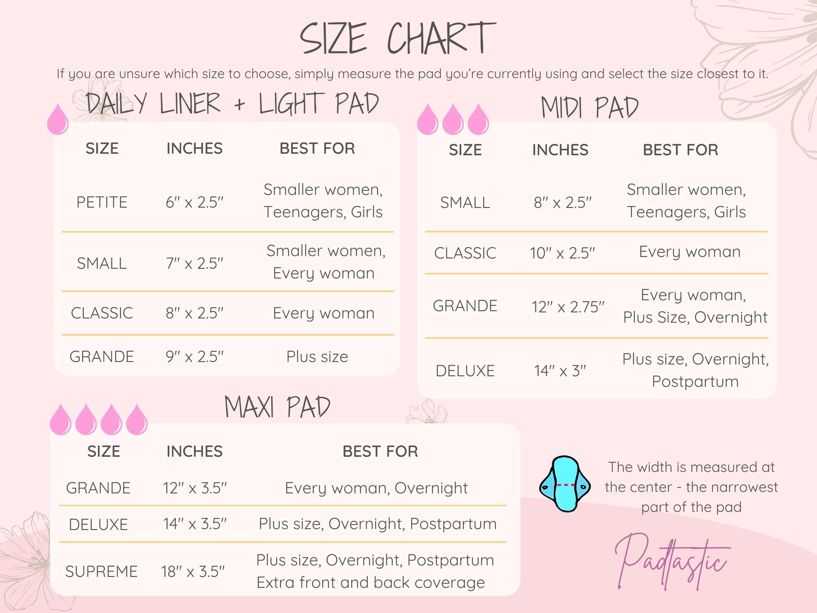 All round protection for your period. Perfect for medium flow. The larger sizes also work great for heav-ish flow since they offer more coverage.